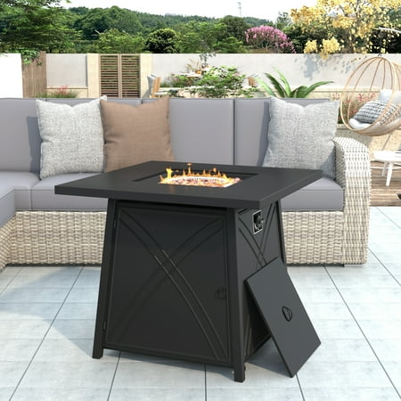 Wolfire 43inch slat aluminum propane gas fire pit table with wind guard. Square steel wood fire pit with tile top: The santa barbara fire pit table is our tribute to the spanish mission style of the early 1900s. In addition to the gas components, the materials of the table will make a difference in the appearance of the flames. Includes a 3 curved sofas, 2 side tables and 1 fire pit;